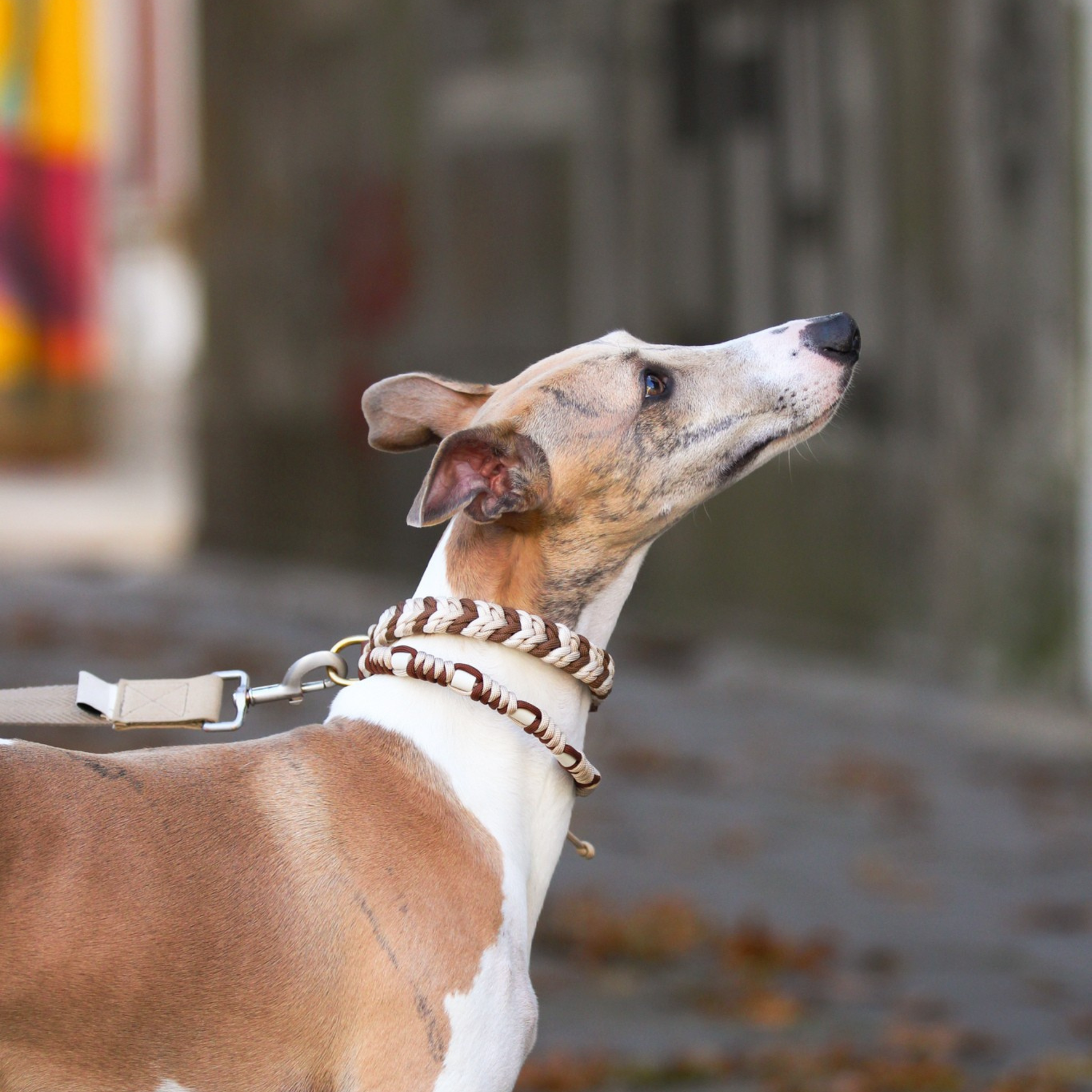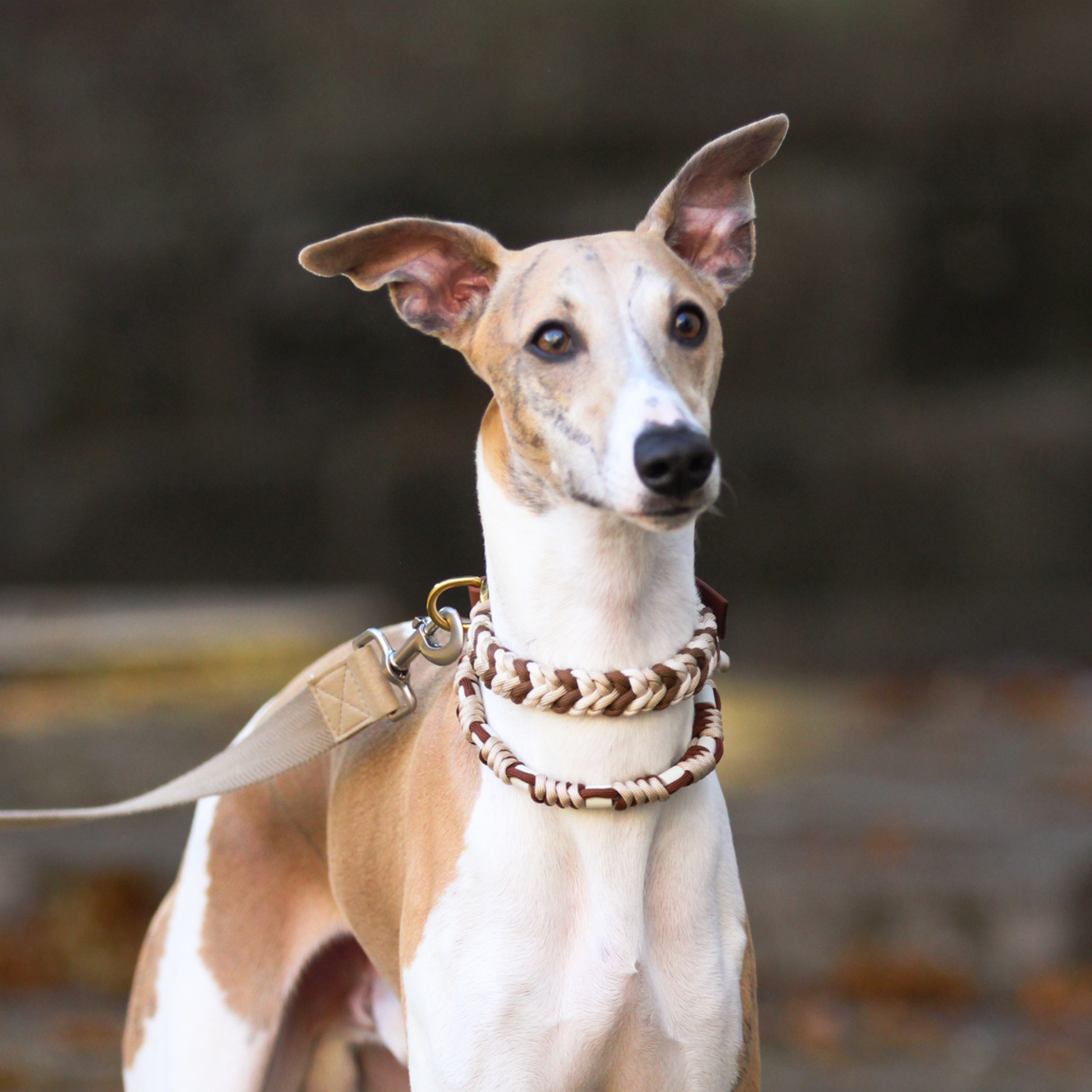 Coleira Clássica feita à mão em corda Paracord personalizável, com acabamento em Biothane para maior resistência e conforto.