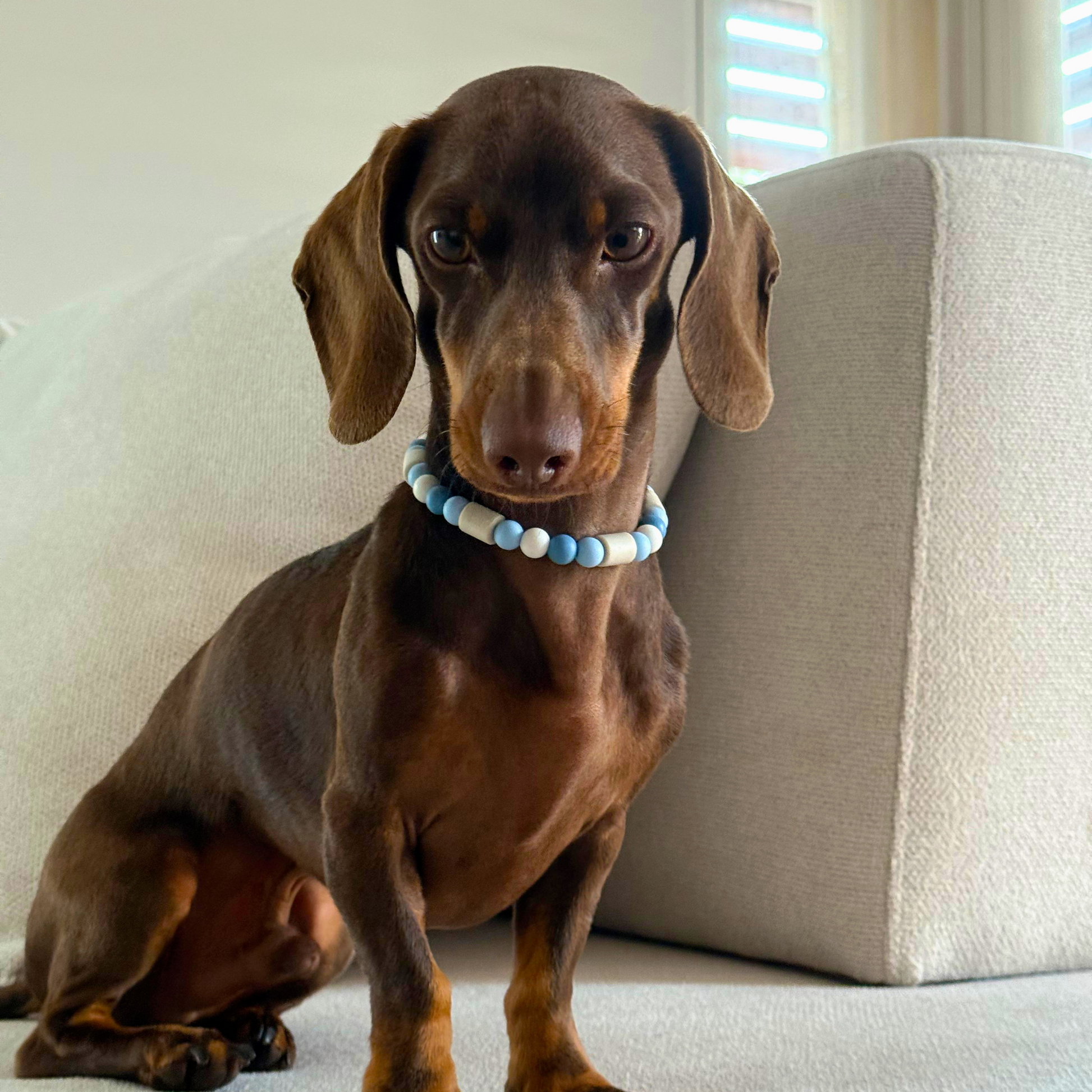 O colar é feito com base na medida do pescoço do seu patudo.